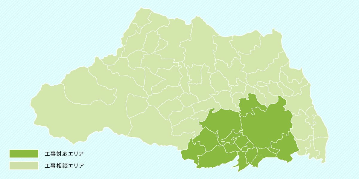 桶川市 / 北本市 / 鴻巣市 / 伊奈町 / 春日部市 / 八潮市 / 三郷市 / 吉川市 / 松伏町 / 飯能市 / 日高市 / 坂戸市 / 鶴ヶ島市 / 毛呂山町 / 越生町 / 東松山市 / 滑川町 / 嵐山町 / 小川町 / 川島町 / 吉見町 / 鳩山町 / ときがわ町 / 東秩父村 / 熊谷市 / 深谷市 / 寄居町 / 本庄市 / 美里町 / 神川町 / 上里町 / 行田市 / 加須市 / 羽生市 / 久喜市 / 蓮田市 / 幸手市 / 白岡市 / 宮代町 / 杉戸町 / 秩父市 / 横瀬町 / 皆野町 / 長瀞町 / 小鹿野町
